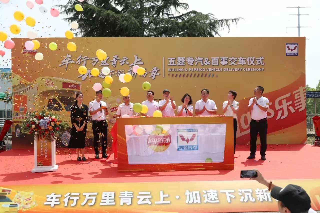 百事食品渠道發(fā)展部高級(jí)經(jīng)理訾東峰、青島市西海岸新區(qū)商務(wù)局副局長(zhǎng)肖玲、青島五菱專用汽車有限公司總經(jīng)理梁開榮等出席儀式,共同見證這一“樂事”。