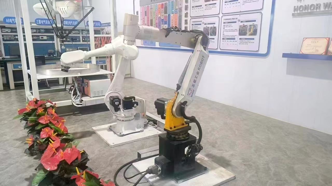 自制機器人負載20kg,活動半徑1650mm,重復定位精度±0.2mm,具備精密化、柔性化、智能化等特點,可實現(xiàn)自由編程,完成全自動化工作,適用于搬運、裝配、碼垛等多種應用場景。目前自制機器人安裝在底盤創(chuàng)造力工坊,作為輕載機器人實操演練教學設(shè)備,激發(fā)員工學習、探索興趣。