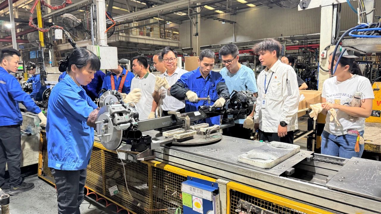 6月21日,柳州市城市職業(yè)學(xué)院赴五菱工業(yè)柳東零部件生產(chǎn)基地開展校企共建活動(dòng),通過實(shí)地參觀、專業(yè)分享與深度交流,推動(dòng)職業(yè)教育與產(chǎn)業(yè)需求精準(zhǔn)對接。其教師團(tuán)隊(duì)先后參觀焊接、機(jī)加工、裝配三大生產(chǎn)工藝流程,近距離觀察工業(yè)生產(chǎn)的標(biāo)準(zhǔn)化作業(yè)場景,通過現(xiàn)場實(shí)操演示直觀理解理論知識,為課程設(shè)計(jì)提供了真實(shí)案例參考。