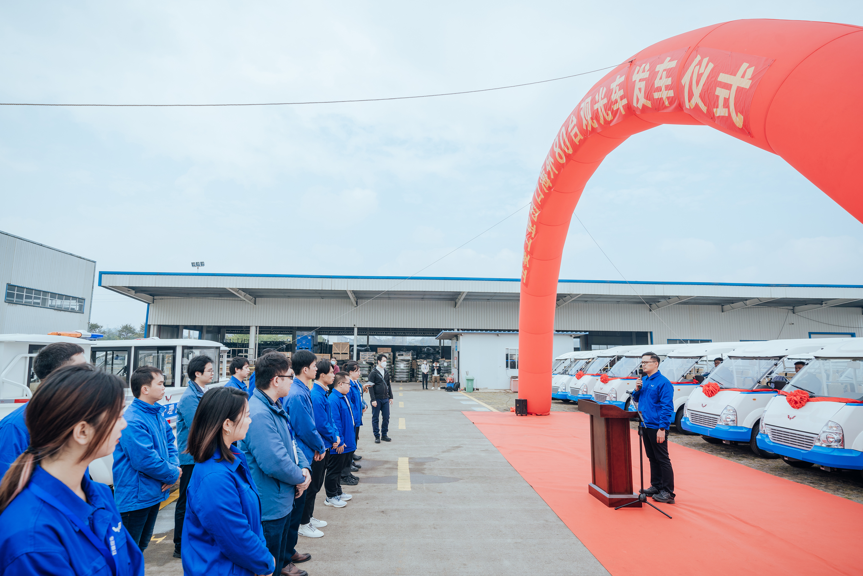 1月9日上午,五菱工業(yè)舉行出口海外觀光車發(fā)車儀式,80輛觀光車即將發(fā)車海外,吹響了五菱工業(yè)2023年進(jìn)軍海外市場的第一聲號角。