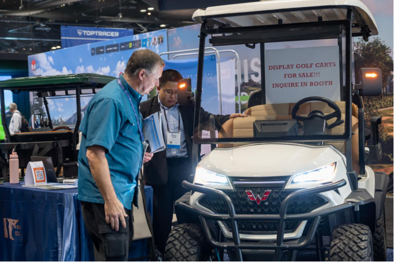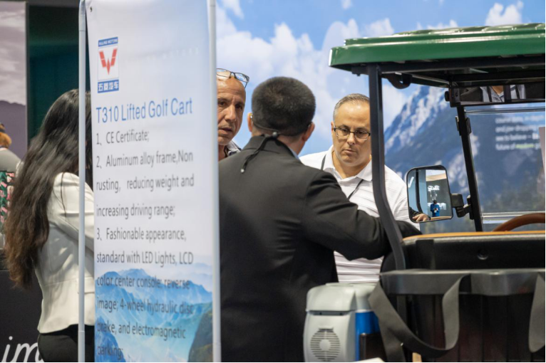 五菱工業(yè)的新款多用途高爾夫球車/社區(qū)車T200、T310融入了創(chuàng)新的設(shè)計理念和技術(shù)成果,綜合實力強勁,現(xiàn)場吸引眾多客戶關(guān)注、咨詢。